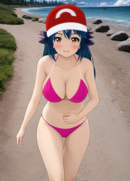 这个模型稍好一些。尽管仍难以保持正确的服装,偶尔会生成随机不同的衣物,特别是小智的裙子。只有亚夏的帽子能始终如一地保留下来。但图像质量已大幅提升,现在可以生成多种场景,而不再执着于同一片废墟都市。