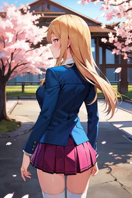 mashi1, 솔로, 학교 복장, 빨간 넥타이, 프릴 스커트, 셔츠, 흰색 양말, 무릎까지 오는 양말, 파란 자켓, 긴 소매, 가슴