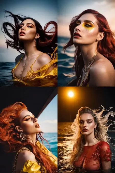 패션 사진은 풍부하고 매끄러운 색조를 가지며, 컬러 테마를 사용자 정의할 수 있습니다. 예시 이미지들은 특별한 보정 없이 한 번에 생성된 네 장의 이미지이며, 최종 결과물의 성공률이 매우 높고 실용적인 수준에 도달합니다.