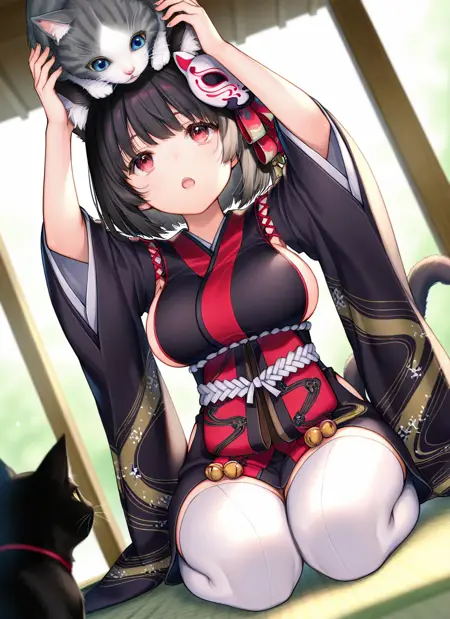 原版(origen): yamashiro(azur lane), (origen), black_kimono, mask, white_legwear,
