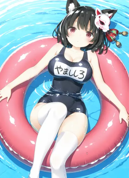 泳装(summer_offensive): yamashiro(azur lane), (summer_offensive), school_swimsuit, mask, white_legwear, name_tag