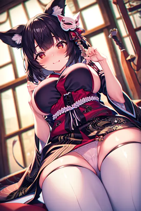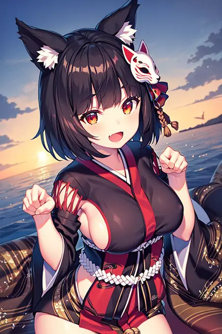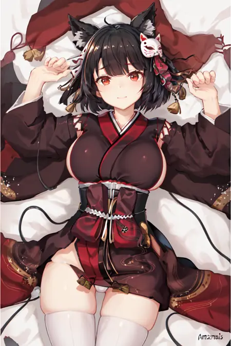 オリジナル(original): yamashiro (azur lane), 短い着物, 頭にマスク,