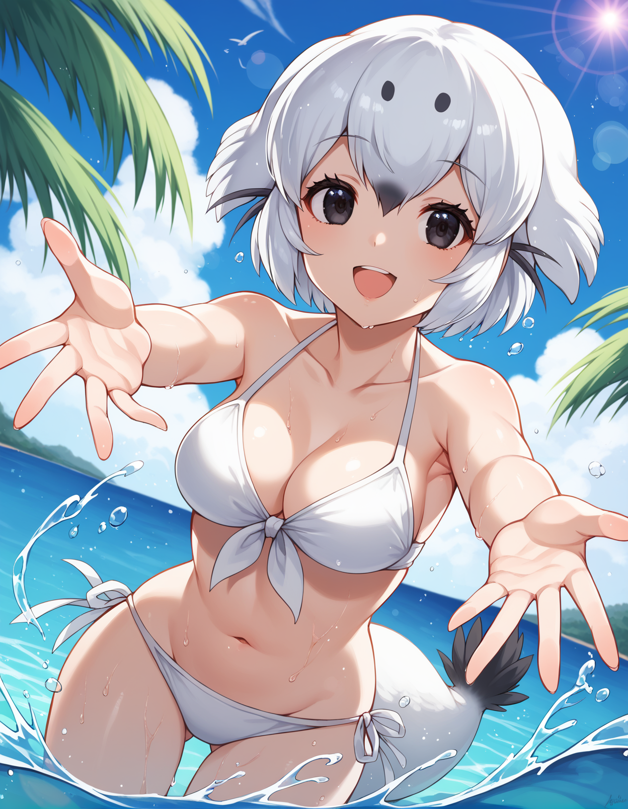 harp seal \(kemono friends\), 1girl, white hair, short hair, multicolored hair, hair between eyes, blue eyes, animal ears, tail