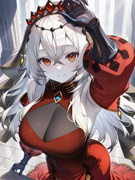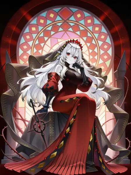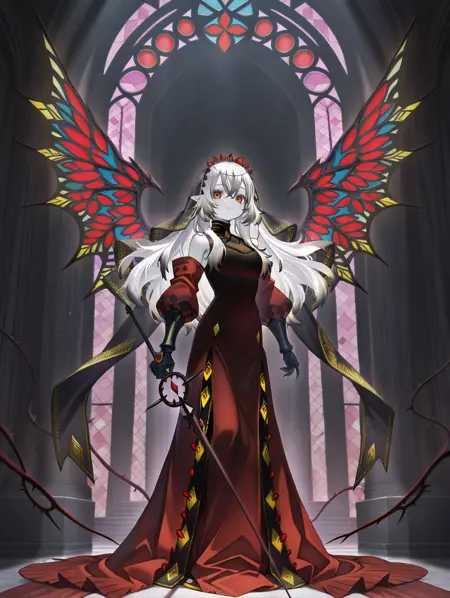 Tags (clothes- for illuXL): red dress red detached sleeves, thorns, black bridal veil, black gauntlets
