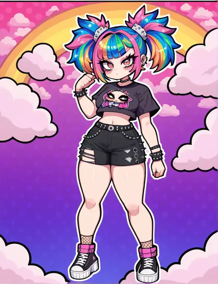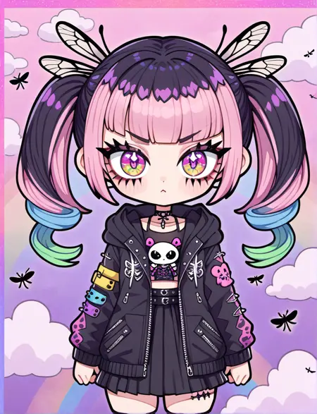 A style similar to some of my hand-drawn illustrations, but ended up coming out differently than expected, and happens to be perfect for making goth girls. In fact, it is biased towards making punk/goth/emo girls.