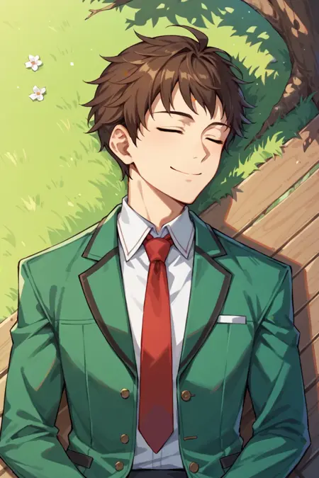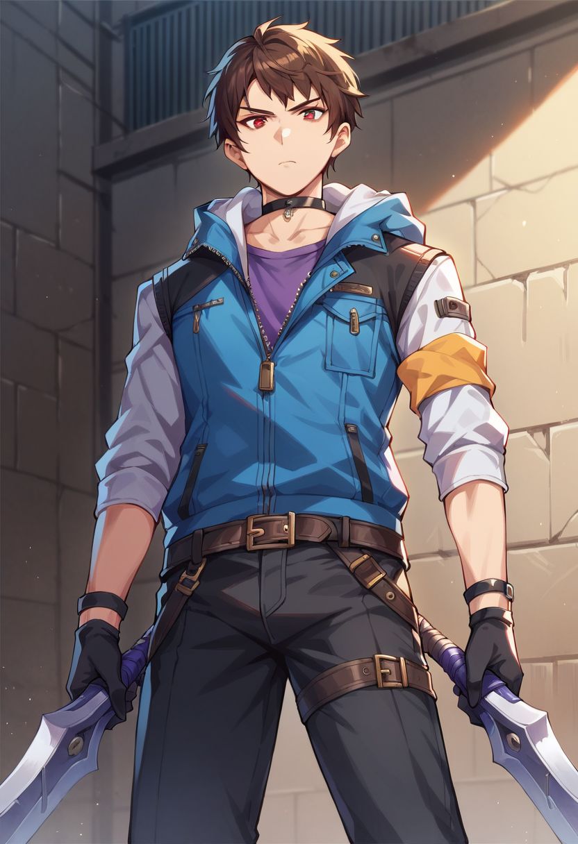 그의 옷세트 세 가지를 생성하도록 학습되었습니다! 강도 0.9 또는 1에서 잘 작동합니다! 학습이 부족해서 그런지, 그의 정확한 헤어스타일이 생성되지 않는 경향이 있으므로, 부정 프롬프트에 _눈 사이의 머리카락_을 추가하는 것을 추천합니다.