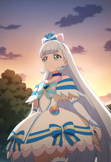 안정적이지 않은 경우, long hair, silver hair, blue eyes, choker, magical girl 등을 보조 키워드로 사용해 주세요. 다른 캐릭터에 비해 성숙한 외모이므로, masterpiece 태그를 추가해도 자연스럽습니다. 이는 신체 비율을 높이고 얼굴 특징을 변화시킵니다.