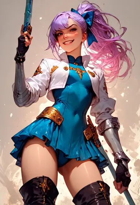 프롬프트 활성화: 1girl, jericho, \(Seven Deadly Sins\),(ultra HD quality details), lavender hair, hair bow, ponytail,