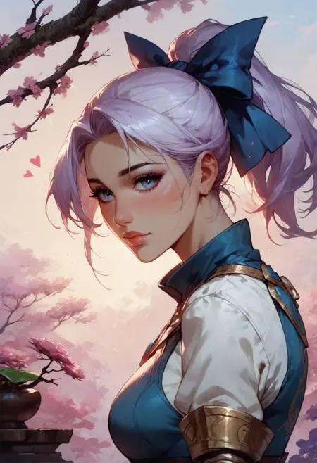 Prompt activator : 1girl, jericho, \(Seven Deadly Sins\),(ultra HD quality details), lavender hair, hair bow, ponytail,