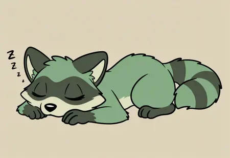 恋人たち: maypullovers, ファリー, 女性, 緑の毛皮, アライグマ, 短い髪, 青い目