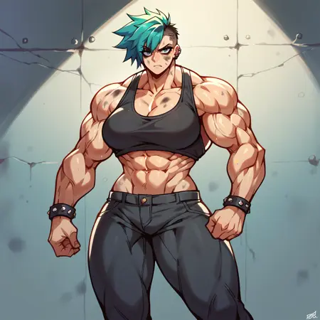 如需更强烈的肌肉效果,我推荐此 LoRA:Giga Muscle Girl