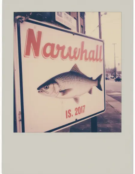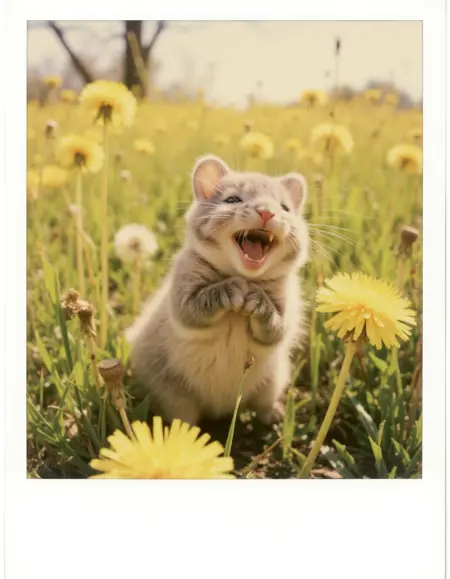a polaroid photo of a group of people standing around a man in a hat in the style of maripol