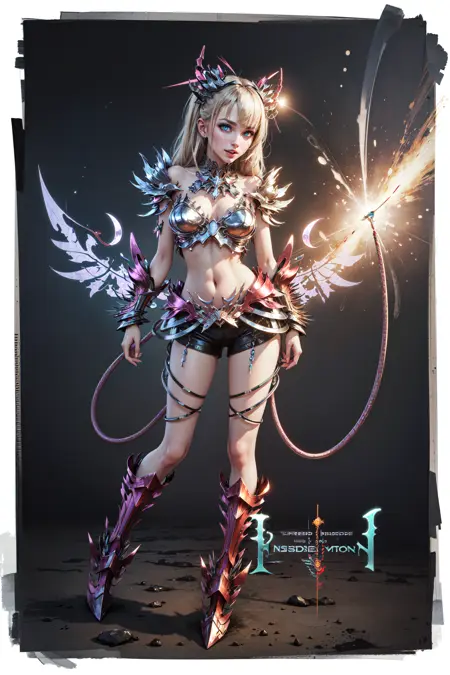 *衣装を変更したい場合は、「アーマー」をナーベル、ショーツ、ビキニなどにカスタマイズするプロンプトを試してみてください。参考に私のプロンプトをご覧ください。