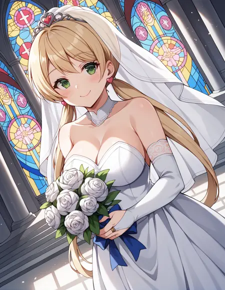 lafter frankland, 1girl, blonde hair, long hair, low twintails, green eyes