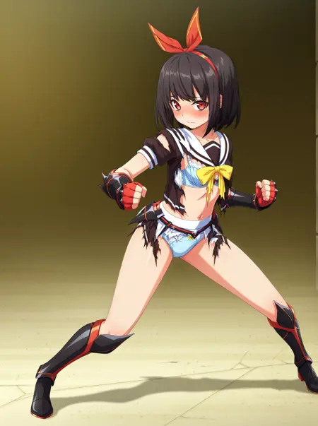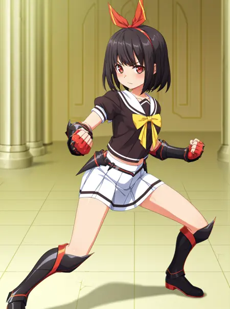 • 女式水手服,黄色领结,露指手套,黑色鞋履,装甲靴