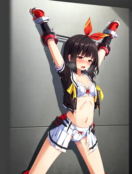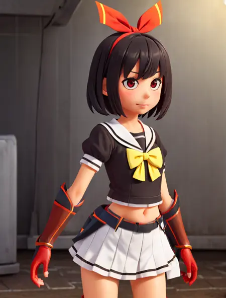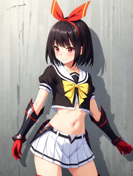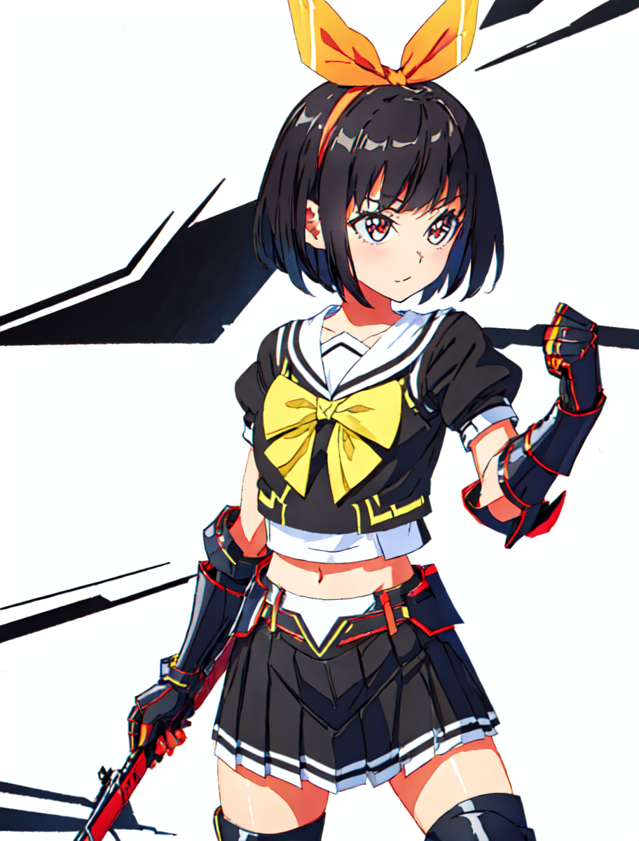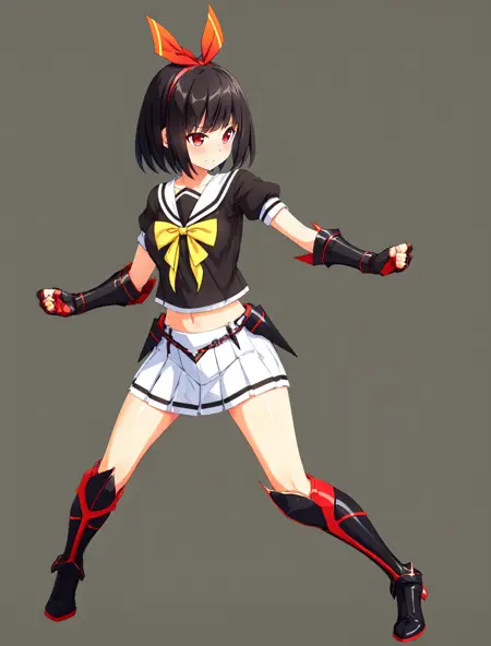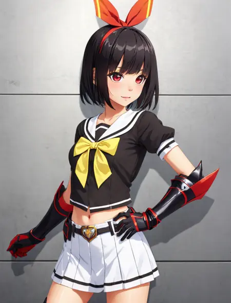• 女式水手服,黄色领结,露指手套,黑色鞋履,装甲靴