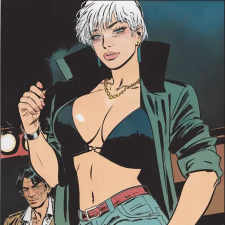 このLoRAは、1980年代のヨーロッパのコミックのクラシックなグラフィックスタイルを彷彿とさせます。スペイン/カタロニアのアーティスト、アルフォンソ・フォントによるグラフィックノベルシリーズ『Taxi』から収集したデータで学習されています。マイナーなのは分かっていますが、単に作れるから、そして子供の頃に読んだこのコミックが私の記憶に残っているから作りました。平和と愛を!