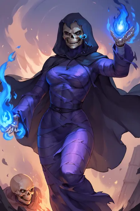 • 触发经典死亡形象:mstrssdeth,戴帽,斗篷,骷髅头,裙子,骨架,破烂衣物,无瞳孔,黑眼,非人类