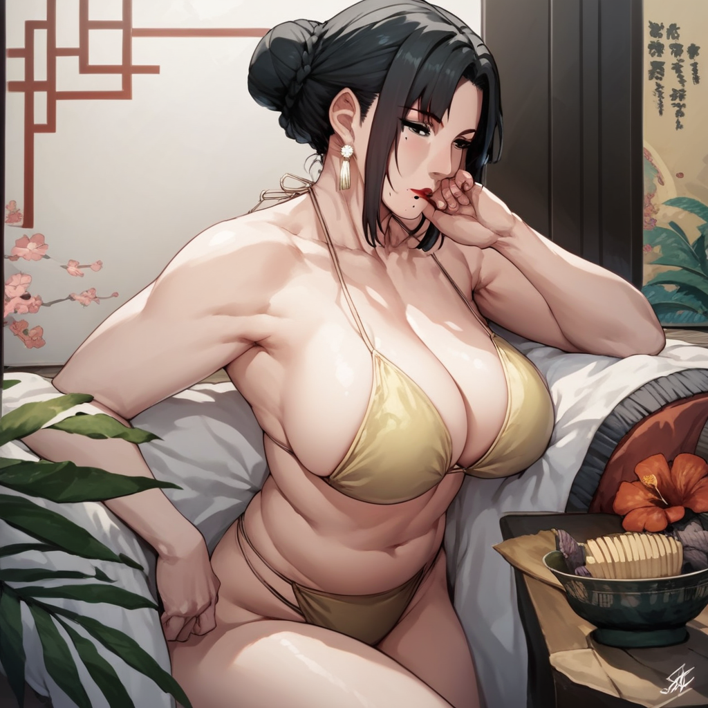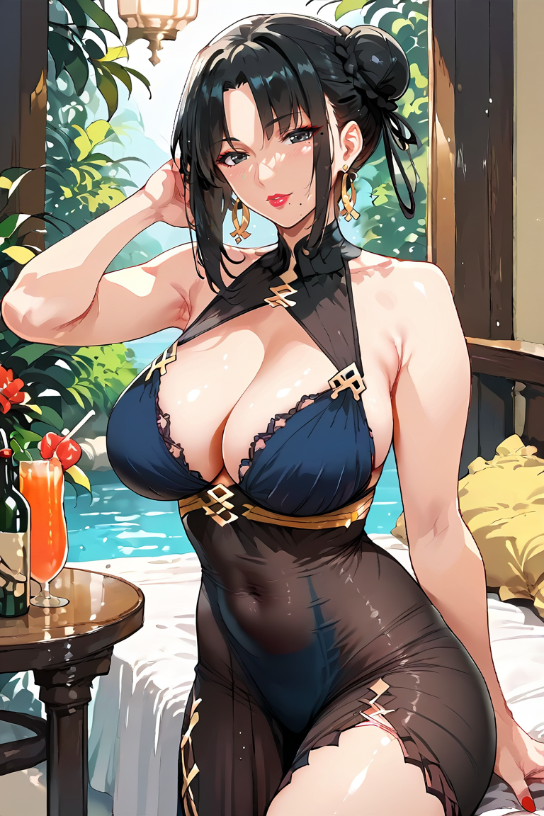 推奨されるプロンプト: score_9, score_8_up, score_7_up, score_6_up, score_5_up, score_4_up, source_anime, Perfect Hand, BERAK, nush, 成熟した女性, 大きな胸, 厚い太もも, 黒髪, 単一の髪飾り, 黒い目, 耳飾り, ジュエリー, リップストッキング, メイク, 口の下のほくろ