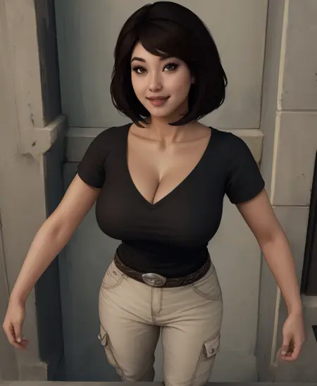 samantha, 갈색 눈, 검은 머리 - 중간 길이 또는 단발, 바지