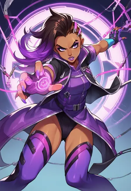 이 LoRa는 Overwatch의 Sombra 👨🏻💻👾를 포함한 이미지를 생성하는 데 사용할 수 있습니다.