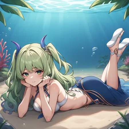 Disclaimer: Pony doesn't seem to understand how "mermaid dress" is supposed to work, so it just makes a mermaid tail thing. Another reason why I already like Illustrious more.