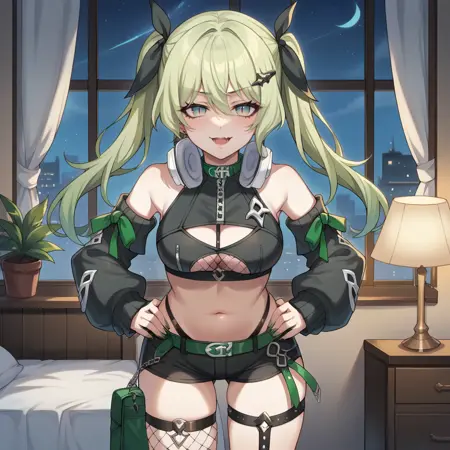 주의사항: Pony 버전의 Razer 협업 복장에서는 "회색 크롭탑" 대신 "검은 크롭탑"을 사용하는 것이 좋습니다. 왜냐하면 Pony은 어떤 이유로든 이를 흰색으로 만들기 때문입니다. Illustrious에서는 문제가 없습니다.