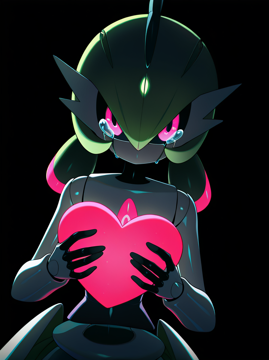提示词:ironvaliantillust 绿发,ironvaliantillust,宝可梦(生物),彩色皮肤,白皮肤,粉红色眼睛,人形机器人
