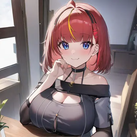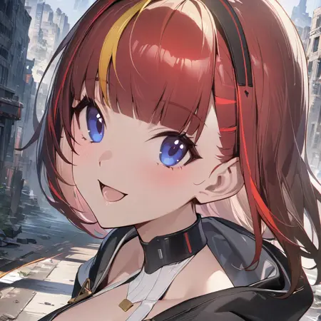 「tess kotkin,」を使用してアクティブ化してください。外見タグは「赤髪、青い目、ストライプ髪、黄色い髪、大きな胸、短髪、アホ毛」です。