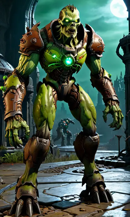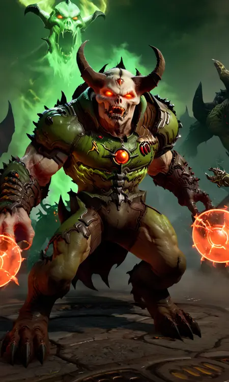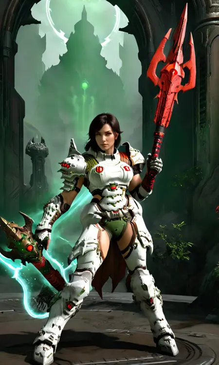 我非常喜爱现代《毁灭战士》系列的艺术风格,这个世界中的每一样东西都如此锐利而流畅。盔甲、角色、关卡设计全都采用了最酷炫的美学风格,尤其受到H.R.吉格尔作品的启发。这个Lora旨在捕捉这个世界中几乎一切事物的艺术风格。它在还原“毁灭战士”或“多姆人”方面表现得尤为出色,以至于我建议,如果你想要的角色不是主角,最好在负面提示中加入“毁灭战士”或“绿色盔甲”。它在制作武器、盔甲、恶魔、各种生物以及受《毁灭战士》启发的环境方面也很出色。