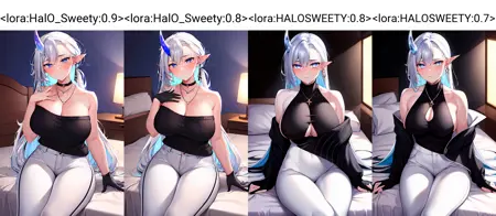 可爱的HalO ♥,我真的很喜欢这个角色。这个LoRA提供了她直播中多种服装和配饰,用途广泛。