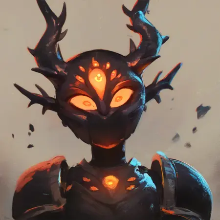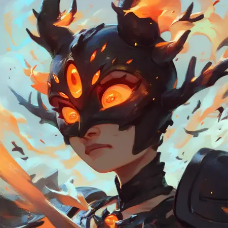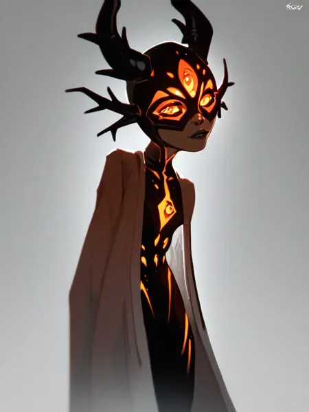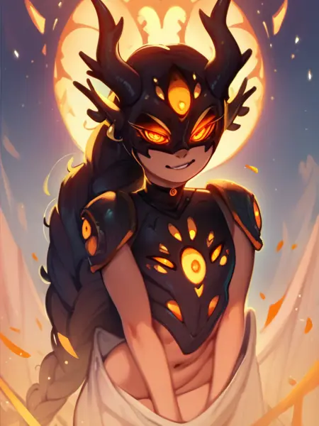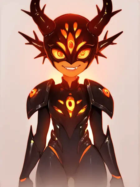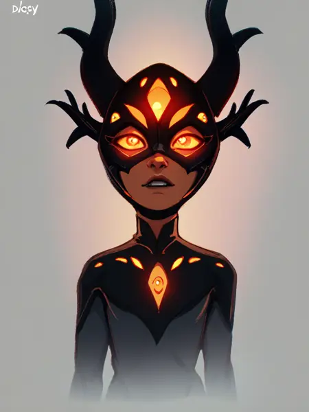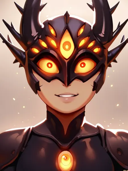 darcy,horns,extra eyes,glowing eyes,orange eyes,half_mask,