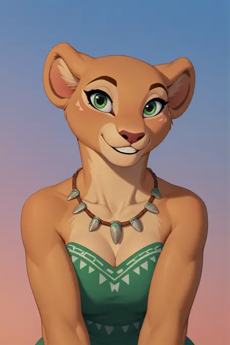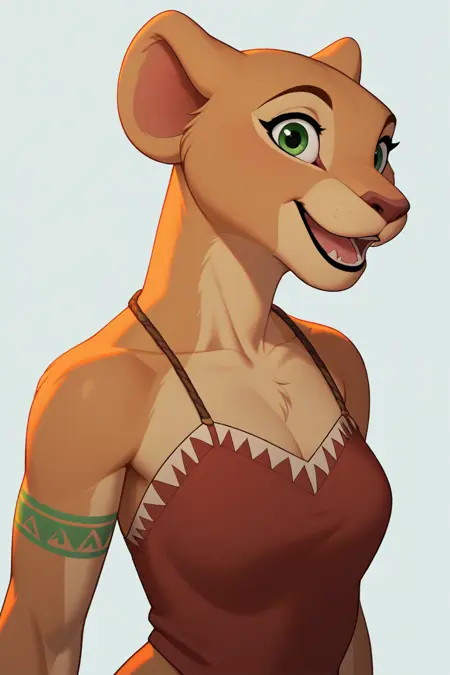 その他の語: female, furry, beige fur, green eyes, snarl, lioness tail