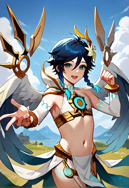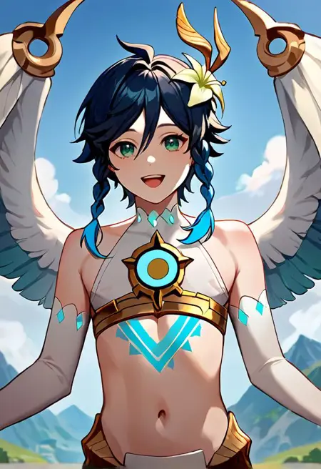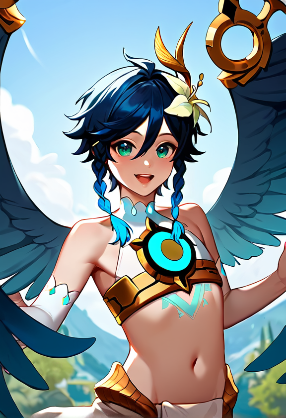 デフォルトの服装: デフォルトの服装、翼、素肌の腰、素肌の hips、髪の花