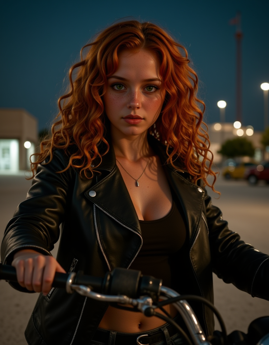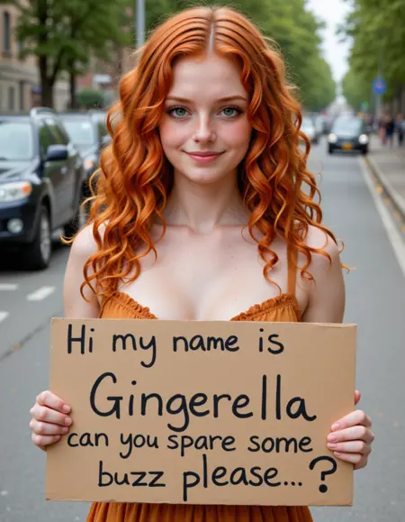 外見タグ:1girl、長い髪、唇、そばかす、赤毛、ginger、薄い肌、オリーブグリーンの目、波状の髪、カールした髪、小柄、豊満、