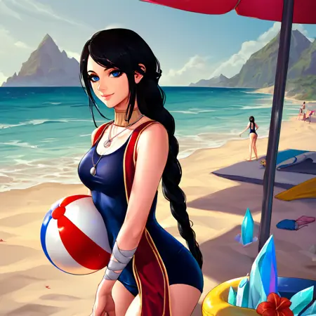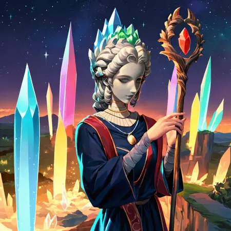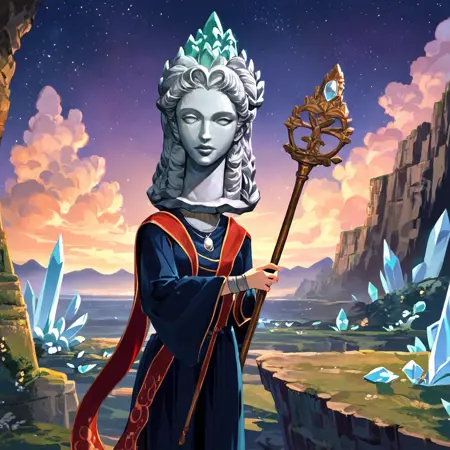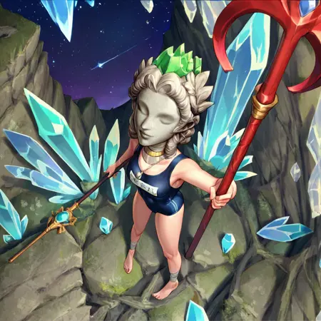 Make sure you put "stone helmet" into the negative prompt if you don't want her to have it, because otherwise, you will be getting an interesting hairdo.