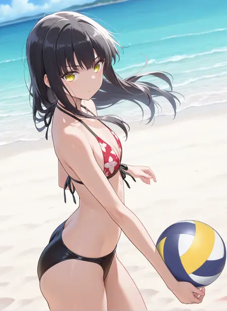 red bikini, black bikini, floral print