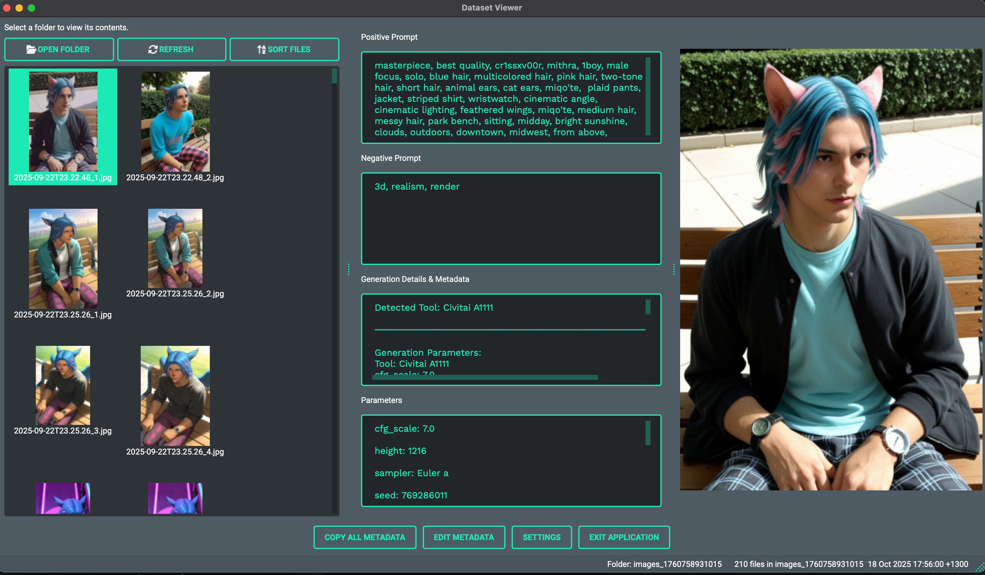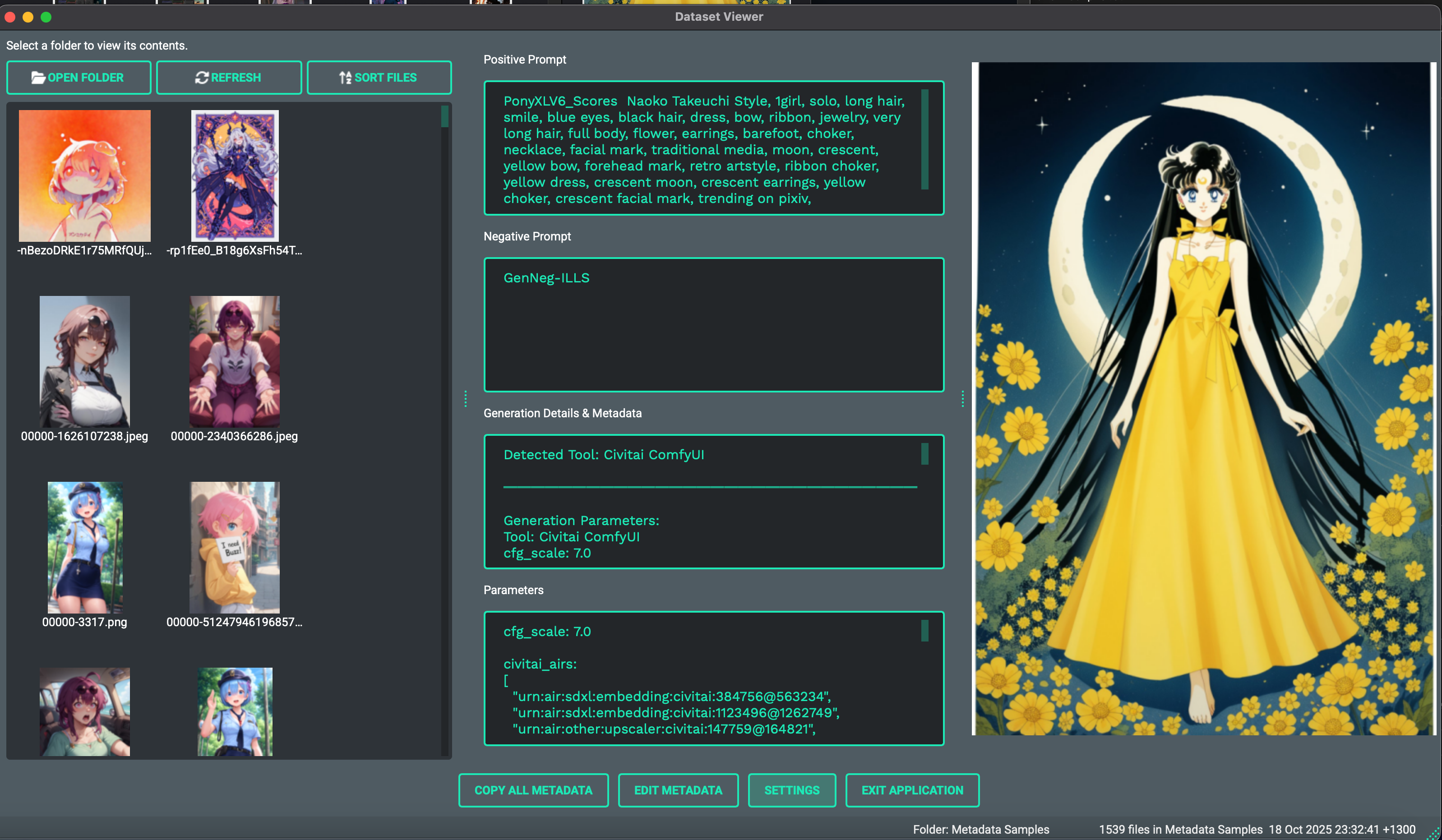 Dataset Tools 是一款桌面应用程序,旨在帮助用户浏览和管理其图像数据集,特别是用于 AI 艺术生成工具(如 Stable Diffusion WebUI Forge、A1111、ComfyUI)和模型文件(如 Safetensors)的数据集。该工具使用 Python 和 PyQt6 开发,提供直观的图形界面,用于浏览文件、查看嵌入的生成参数以及检查相关元数据。