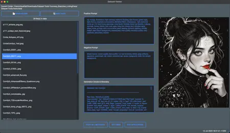 Dataset Tools is a desktop application for browsing and managing AI image datasets with comprehensive metadata extraction. Whether you're organizing generations from A1111, ComfyUI, Civitai, or other tools - or just curious what parameters were used to create that cool image - Dataset Tools has you covered.