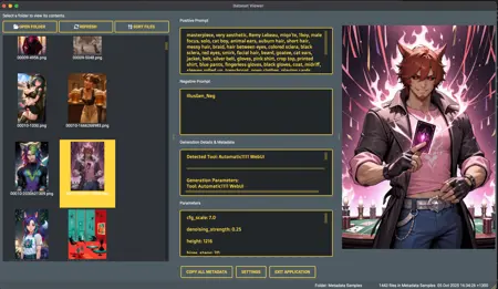该工具使用 Python 和 PyQt6 构建,提供直观的界面,用于查看嵌入的生成参数、ComfyUI 工作流、模型元数据,甚至非 AI 图像的相机 EXIF 数据。