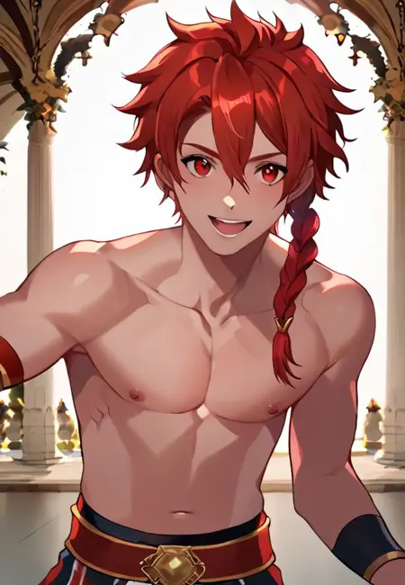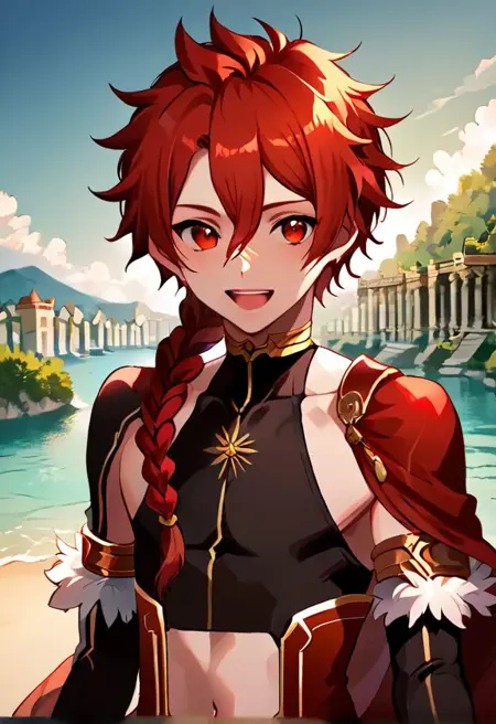 트리거 + 외모: alexander, 붉은 눈, 붉은 머리, 땋은 머리,