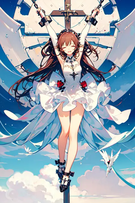 The action is defined as the hands are suspended, the feet together, forming a Y shape.