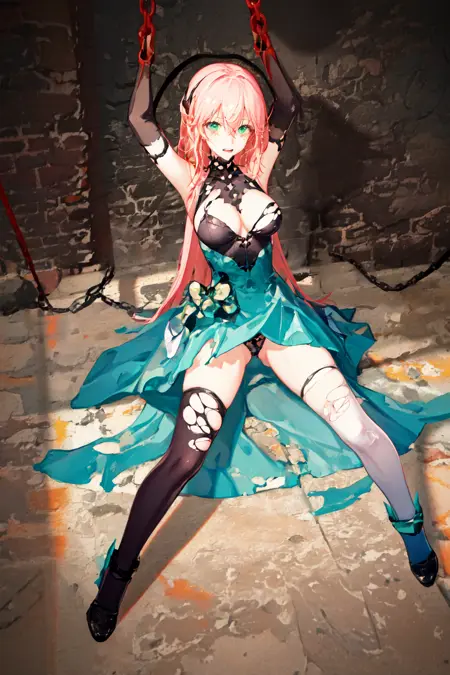 The action is defined as the hands are suspended, the feet together, forming a Y shape.