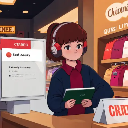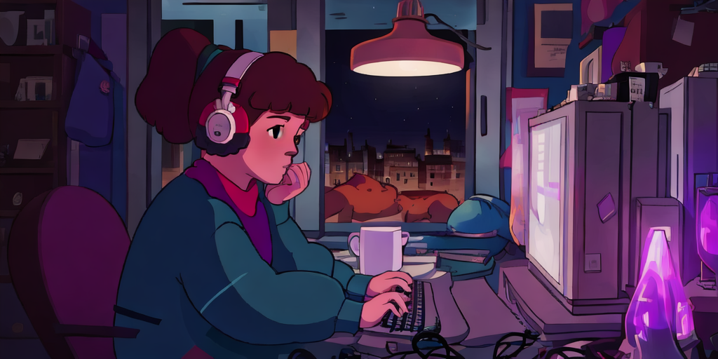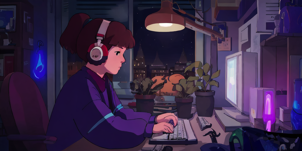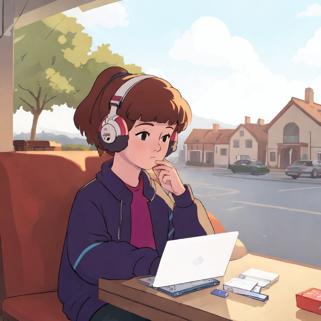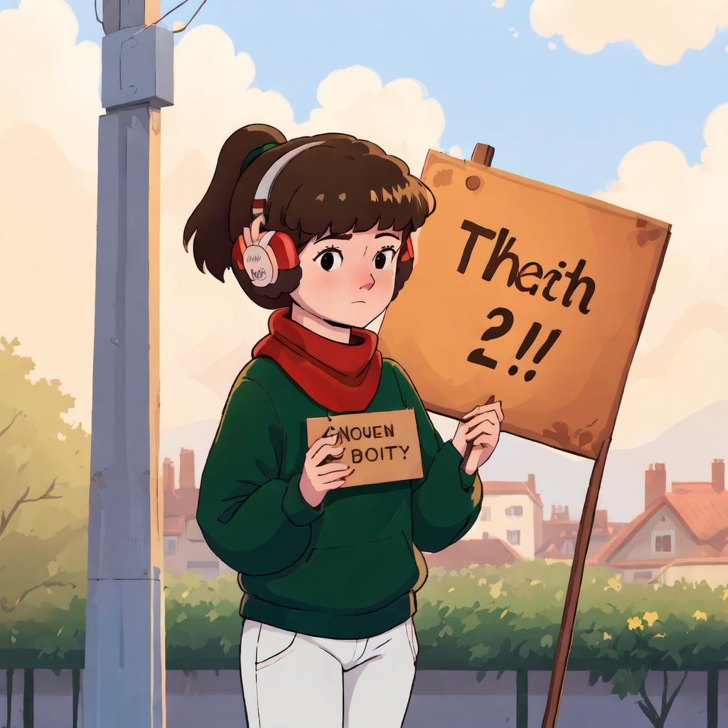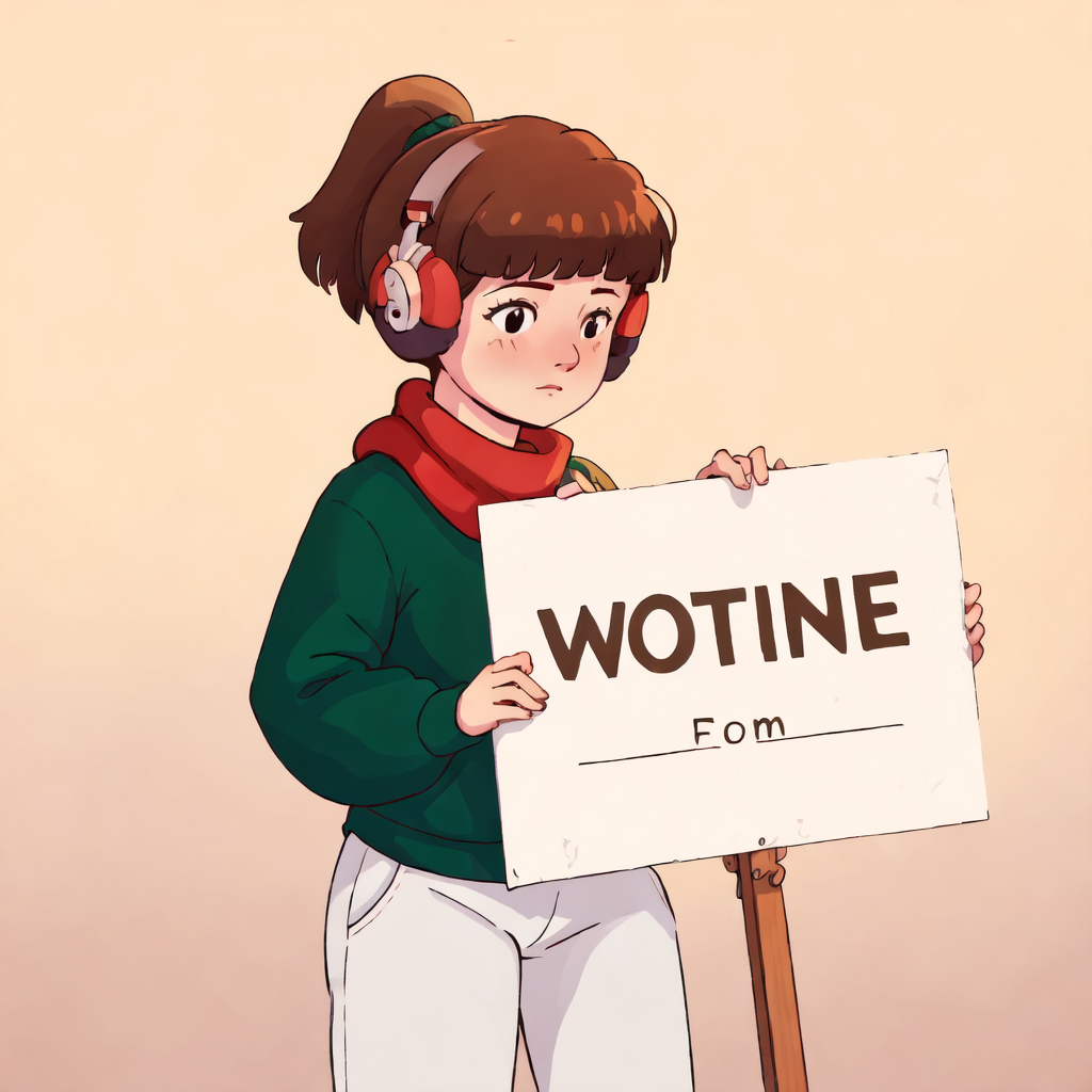 Lo-Fi, LoFi, Green sweater, Red scarf, 1girl, solo, ponytail, brown hair, blush, black eyes, white pant