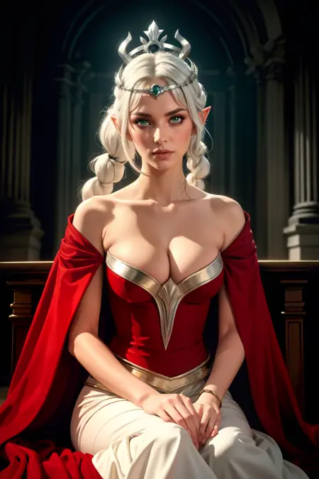 dr3ss, red dress, long dress, capelet, hood, form-fitting, collarbone, cleavage