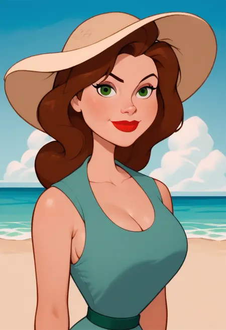 Triggerwords: anniehughesxl, brown hair, red lips, green eyes, long hair,