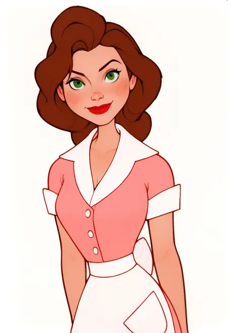 waitress outfit: waitress attire, white loafers, pink skirt, pink skirt,