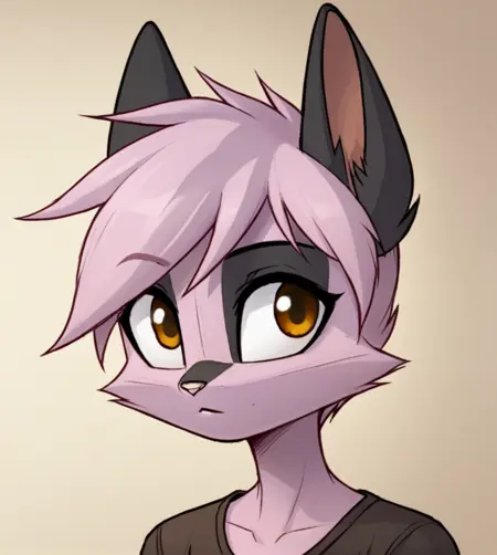 furry, mammal, pink fur, tail, ears, source_furry, brown eyes, anthro, fur, pink body, pink hair,