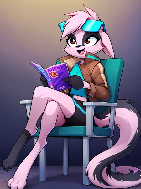 毛茸茸的,哺乳动物,粉红色毛发,尾巴,耳朵,source_furry,棕色眼睛,拟人化,毛发,粉红色身体,粉红色头发,