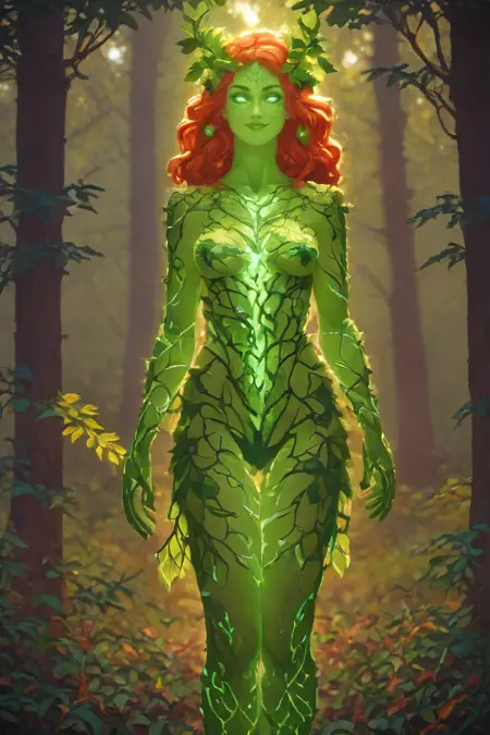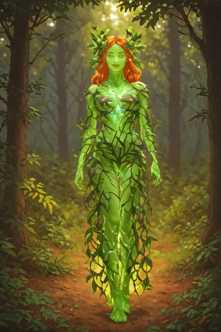 forest spirit,leafy appendages outlined with veins light,glowing eyes,
